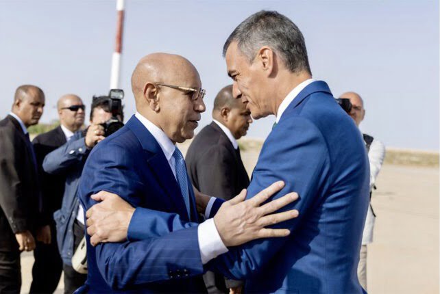 استقبل الرئيس محمد ولد الشيخ الغزواني، مساء اليوم الثلاثاء في مطار نواكشوط الدولي أم التونسي، رئيس حكومة إسبانيا السيد بيدرو سانشيز، الذي بدأ اليوم بزيارة صداقة وعمل لموريتانيا تدوم يومين.