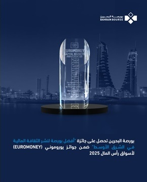 بورصة البحرين تحصل على جائزة “أفضل بورصة لنشر الثقافة المالية في الشرق الأوسط” ضمن جوائز يوروموني لأسواق رأس المال 2025