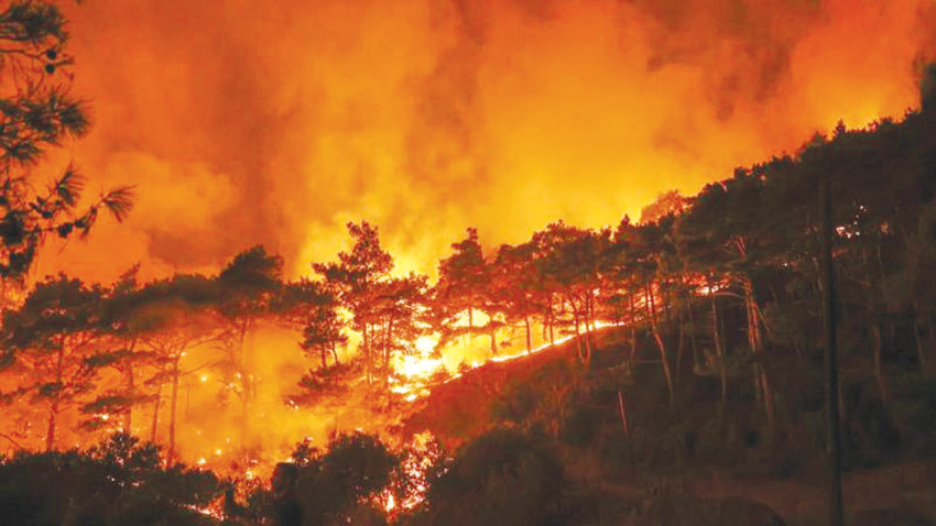 وبالتزامن‭ ‬مع‭ ‬موجة‭ ‬حرّ‭ ‬تضرب‭ ‬المنطقة‭ ‬منذ‭ ‬مطلع‭ ‬يوليو‭ ‬2025،‭ ‬تجتاح‭ ‬حرائق‭ ‬ضخمة‭ ‬غابات‭ ‬ومناطق‭ ‬حرجية‭ ‬في‭ ‬تركيا‭ ‬وسوريا‭ ‬تسببت‭ ‬في‭ ‬خسائر‭ ‬مادية‭ ‬وبشرية‭ ‬كبيرة،‭ ‬وسط‭ ‬تحذيرات‭ ‬من‭ ‬تفاقم‭ ‬الكارثة‭ ‬وصعوبات‭ ‬في‭ ‬عمليات‭ ‬الإخماد‭ ‬في‭ ‬سوريا‭ ‬بسبب‭ ‬وجود‭ ‬ألغام‭ ‬من‭ ‬مخلفات‭ ‬الحرب‭ ‬ووعورة‭ ‬التضاريس‭ ‬وضعف‭ ‬الإمكانيات‭ ‬والموارد‭. ‬وتشير‭ ‬التقديرات‭ ‬الأولية‭ ‬إلى‭ ‬أن‭ ‬حرائق‭ ‬الغابات‭ ‬في‭ ‬اللاذقية‭ ‬‮«‬أثرت‭ ‬على‭ ‬نحو‭ ‬خمسة‭ ‬آلاف‭ ‬شخص،‭ ‬بينهم‭ ‬نازحون،‭ ‬في‭ ‬أكثر‭ ‬من‭ ‬60‭ ‬تجمعا‭ ‬سكانيا‮»‬،‭ ‬وفقا‭ ‬لتصريحات‭ ‬من‭ ‬مكتب‭ ‬الأمم‭ ‬المتحدة‭ ‬لتنسيق‭ ‬الشؤون‭ ‬الإنسانية‭ ‬في‭ ‬سوريا‭ ‬لفرانس‭ ‬برس‭. ‬