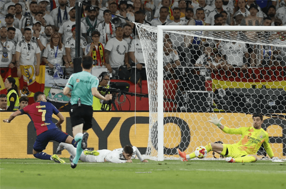 ثلاثية البارسا حملت توقيع بيدري وفيران توريس وجوليس كوندي في الدقائق 28 و84 و116، بينما سجل للميرنجي، مبابي وتشواميني في الدقيقتين 70 و77.