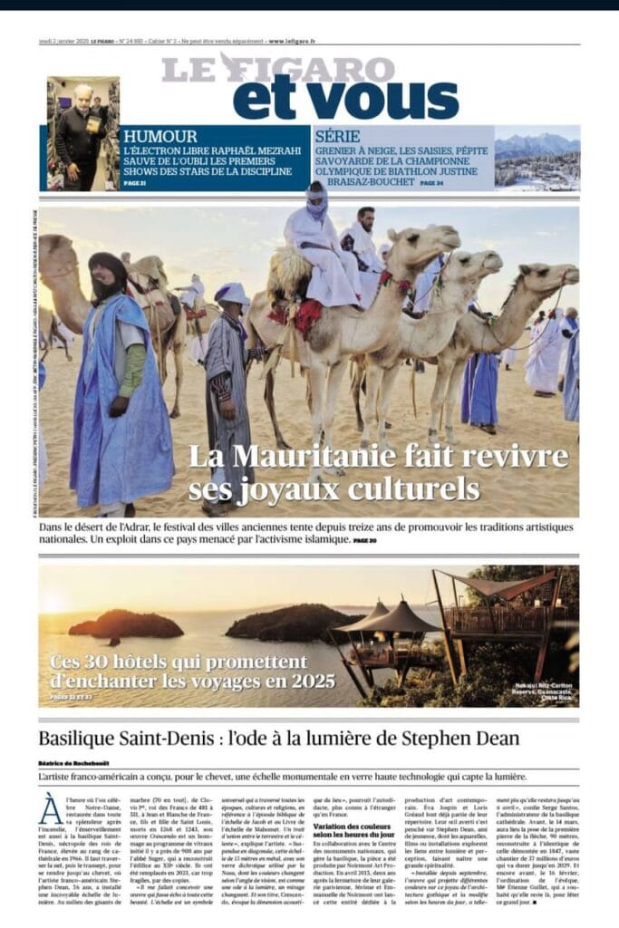 في عددها الصادر بتاريخ 2 يناير 2025، خصصت صحيفة “لو فيغارو” الفرنسية مساحة واسعة لتسليط الضوء على مهرجان مدائن التراث، الذي يُنظم سنويًا في موريتانيا لإحياء التراث الثقافي والإنساني للمدن التاريخية الأربع: شنقيط، وادان، تيشيت، وولاتة.