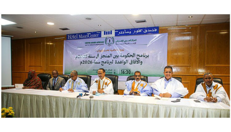 نظم المركز العربي الإفريقي للإعلام والتنمية، مساء اليوم الأحد في نواكشوط، ندوة فكرية تحت عنوان: «برنامج الحكومة بين منجزات سنة 2025 والآفاق الواعدة لبرنامج سنة 2026».