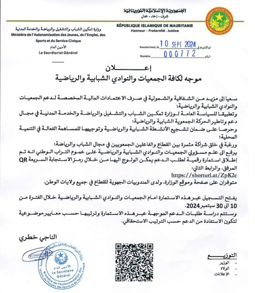 الإعلان وُجه إلى مسؤولي الجمعيات والنوادي الشبابية والرياضية على عموم التراب الوطني، رغبة في خلق شراكة مثمرة بين القطاع والفاعلين في الجمعيات الشبابية والرياضية.