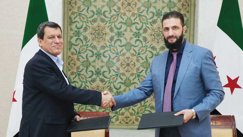 ‬أعلنت‭ ‬دمشق‭ ‬أمس‭ ‬الثلاثاء‭ ‬‮«‬وقفا‭ ‬شاملا‭ ‬لإطلاق‭ ‬النار‮»‬‭ ‬مع‭ ‬الأكراد‭ ‬في‭ ‬شمال‭ ‬وشمال‭ ‬شرق‭ ‬البلاد،‭ ‬عقب‭ ‬لقاء‭ ‬جمع‭ ‬قائد‭ ‬قوات‭ ‬سوريا‭ ‬الديموقراطية‭ ‬مظلوم‭ ‬عبدي‭ ‬مع‭ ‬الرئيس‭ ‬الانتقالي‭ ‬أحمد‭ ‬الشرع‭ ‬في‭ ‬دمشق،‭ ‬غداة‭ ‬اشتباكات‭ ‬بين‭ ‬قوات‭ ‬حكومية‭ ‬وأخرى‭ ‬كردية‭ ‬في‭ ‬مدينة‭ ‬حلب‭ ‬أسفرت‭ ‬عن‭ ‬مقتل‭ ‬شخصين‭. ‬ويأتي‭ ‬إعلان‭ ‬وقف‭ ‬إطلاق‭ ‬النار‭ ‬بينما‭ ‬أخّرت‭ ‬خلافات‭ ‬كبيرة‭ ‬بين‭ ‬السلطات‭ ‬الانتقالية‭ ‬والإدارة‭ ‬الذاتية‭ ‬الكردية‭ ‬تنفيذ‭ ‬اتفاق‭ ‬تم‭ ‬التوصل‭ ‬إليه‭ ‬في‭ ‬مارس‭ ‬الماضي،‭ ‬وتضمّن‭ ‬بنودا‭ ‬عدّة‭ ‬حول‭ ‬دمج‭ ‬المؤسسات‭ ‬المدنية‭ ‬والعسكرية‭ ‬للإدارة‭ ‬الذاتية‭ ‬الكردية‭ ‬في‭ ‬المؤسسات‭ ‬الوطنية‭.  ‬