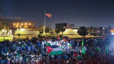 الموريتانيين يتظاهرون أمام السفارة الأمريكية بنواكشوط تنديدا بالعدوان الصهيوني على غزة