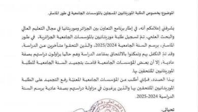 أوامر لمؤسسات جامعية جزائرية برفع التجميد عن طلبة موريتانيين