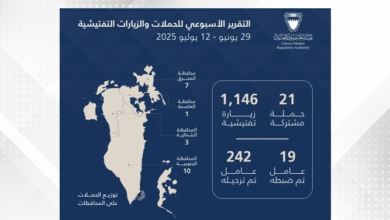 نفذت هيئة تنظيم سوق العمل 1,167 حملة وزيارة تفتيشية، خلال الفترة الممتدة من 29 يونيو إلى 12 يوليو الجاري، وأسفرت…