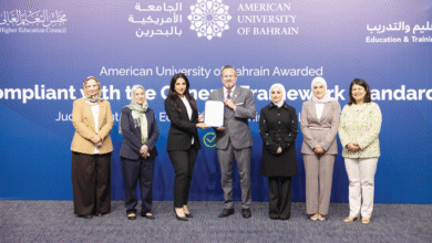 الجامعة الأمريكية بالبحرين تحصل على شهادة «ممتثل لمعايير الإطار العام» من هيئة جودة التعليم والتدريب